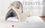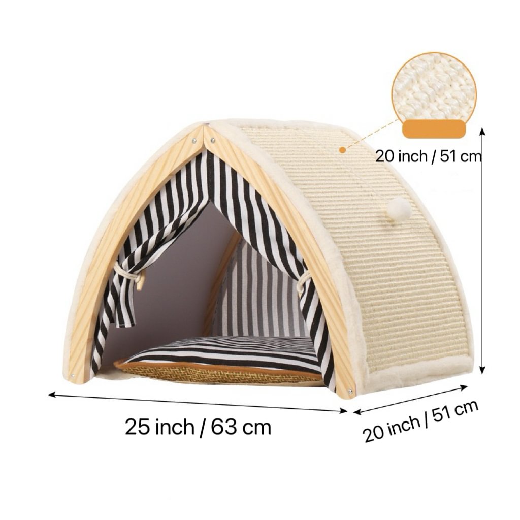 - Enhancing your pet's sleep experience, this cat tent showcases a removable insert cushion lined with insulating sherpa, providing a warm and cozy sleep surface. This thoughtful design is not only gentle on delicate noses and paws but also maximizes snuggling comfort for your furry friend.